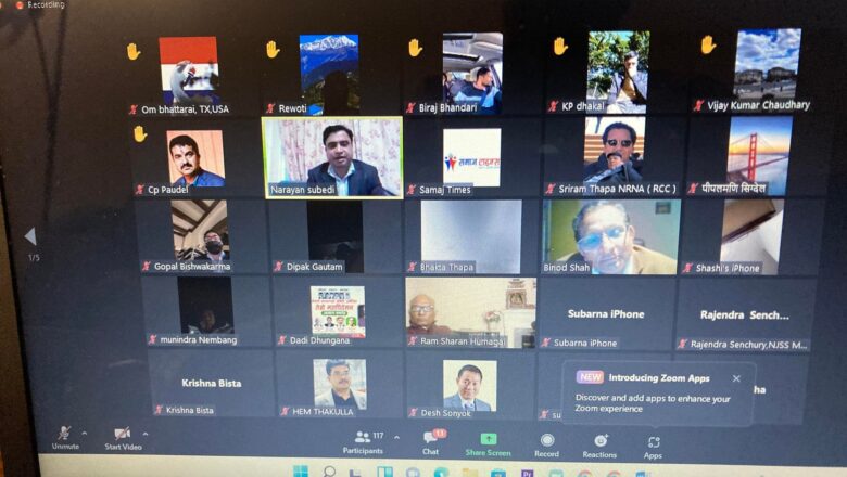अमेरिका । निकै नाटकिय र योजनावद्द रुपमा सम्पन्न भएको नेपाली जनसम्पर्क समिति अमेरिकाको तेस्रो अधिवेशनले नेपाली कांग्रेसको आसन्न १४ महाधिवेशनका लागि १४ जना प्रतिनिध छनौट गरेको छ । भर्चुअल मार्फत सम्पन्न अधिवेशनमा सहभागि क्रियाशिल सदस्यहरुको माइक म्युट गराएर १४ जनाको नाम पढि सर्वसम्मत भएको घोषणा निर्वाचन अधिकृत डाक्टर विश्व शाहले गरेका थिए । त्यस पछि … Continue reading नाटकिय रुपमा सम्पन्न जनसम्पर्क समिति अमेरिकाको अधिवेशनले १४ जना प्रतिनिधि छान्यो