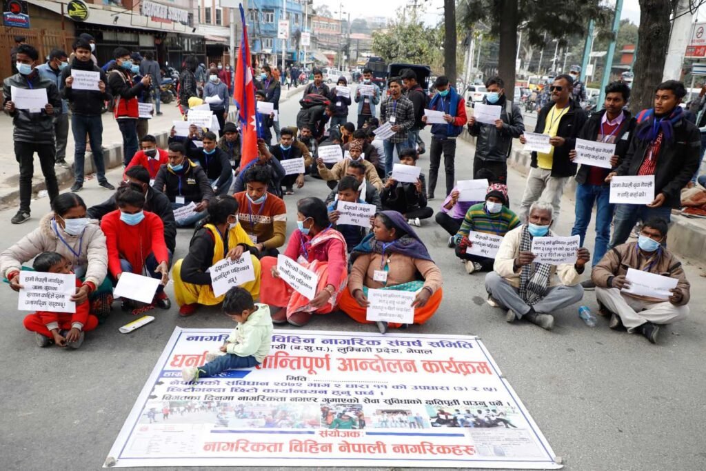नागरिकताविहीन नागरिक संघर्ष समितिले आइतबार काठमाडौंको माइतीघर मण्डलामा नेपालको संविधानको धारा ११ को उपधारा ३ र ५ अनुसार जन्मसिद्ध र एकल आमाका सन्तानले नागरिकता पाउनुपर्ने माग राख्दै प्रदर्शन गरेको हो ।