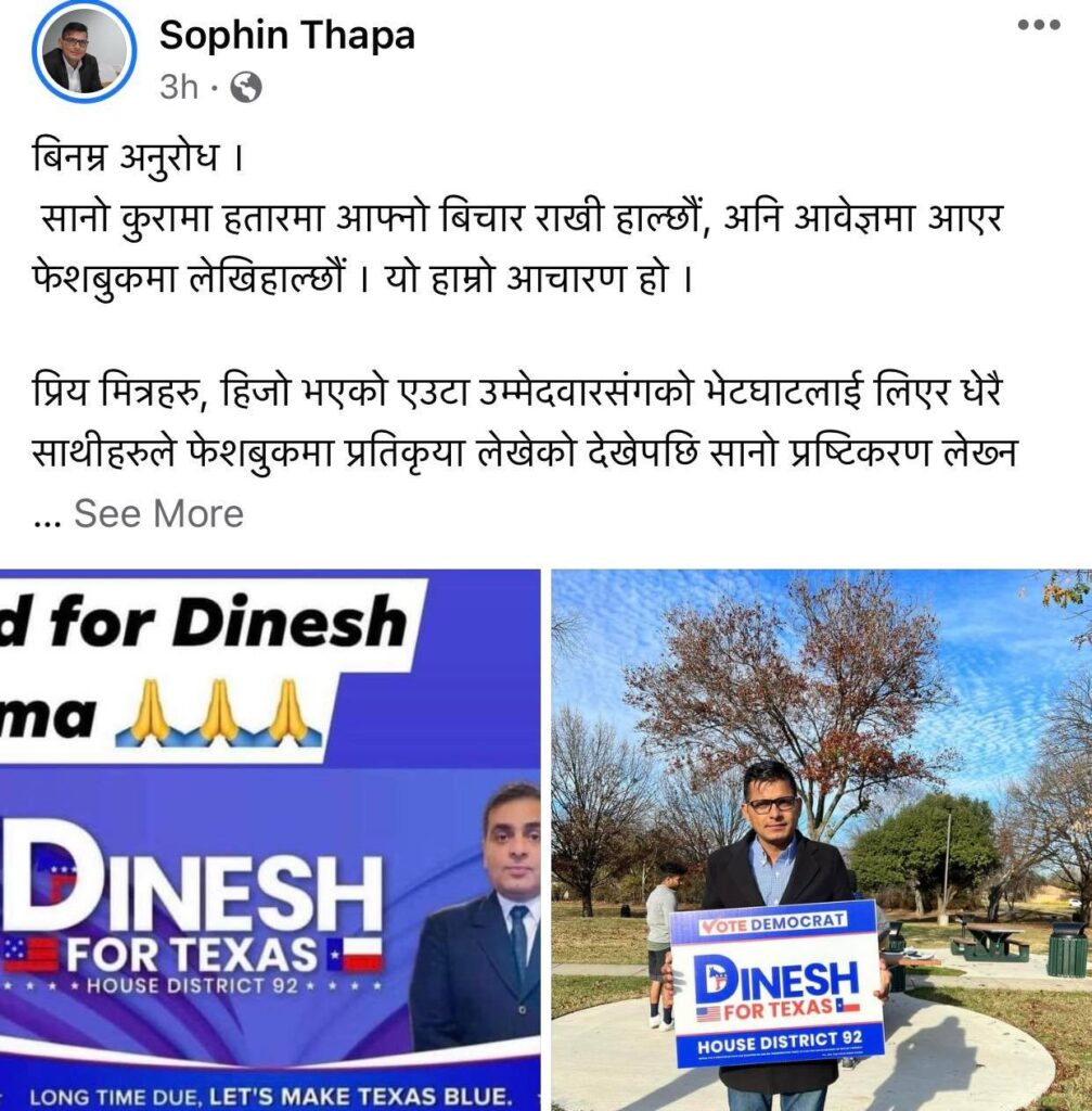 अमेरिकामा नेपाली : टेक्सास समाजमा चुनाव हारेको रिस मुलुधारको राजनीतिमा ?