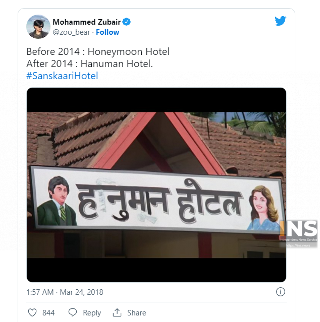 दिल्ली पुलिसका अनुसार, एउटा तस्बिर (ट्विटमा) देखाइएको थियो, जसमा ‘हनिमून होटल’ को साइनबोर्डलाई ‘हनुमान होटल’मा परिवर्तन गरिएको छ। हनुमान भक्त @balajikijaiin ले ट्वीट गरे, ‘हाम्रा भगवान हनुमानजीलाई हनीमूनसँग जोड्नु भनेको हिन्दुहरूको सीधा अपमान हो, किनभने उहाँ ब्रह्मचारी हुनुहुन्छ। यो मान्छे लाई कारबाही होस्। ‘