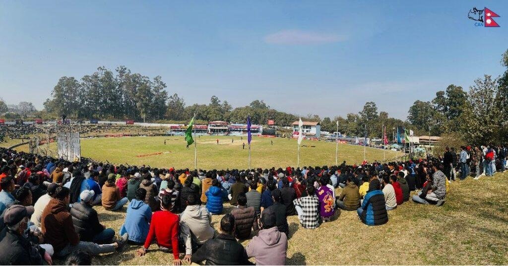 विशाल लक्ष्य पछ्याउने क्रममा नेपालका ओपनर आसिफ शेख दोस्रो ओभरमै खाता नखोली आउट भएपछि पारी सम्हाल्न आएका कुशल भुर्तेल र ज्ञानेन्द्र मल्लले ५० रनको साझेदारी गरे । ज्ञानेन्द्र ५३ रन हुँदा आउट भए । त्यसपछि भुर्तेल र कप्तान रोहित पौडेलले तेस्रो विकेटका लागि