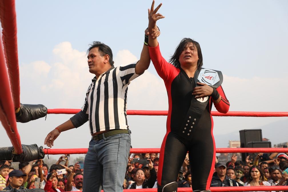 काठमाडौं /नेपाली रेस्लर भगवती खड्का (युनिका) ले अन्तर्राष्ट्रिय रेस्लिङ महाभिडन्त सोमबार अमेरिकी रेस्लरलाई पराजित गरेकी छन् ।