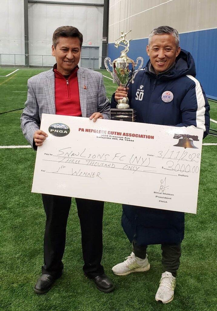 पेन्सिलभेनिया (पीए) नेपाली गुठी एशोशिएशनद्वारा आयोजित एक दिने प्रतियोगिताको शनिवार साँझ भएको फाइनलमा तिब्बेत एलो एफसी न्यूयोर्कलाई हराउदै स्नो लायन्सले उपाधी जितेको हो।