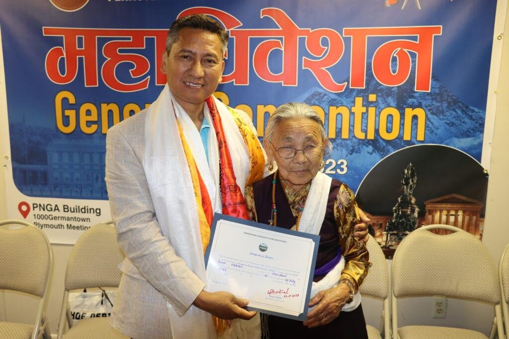 यस्तै जेष्ठ नागरिक ९३ वर्षीया नोर्गिन डोल्मा मोक्तानले विजयी पदाधिकारीलाई खादा लगाइदिएकी थिइन।