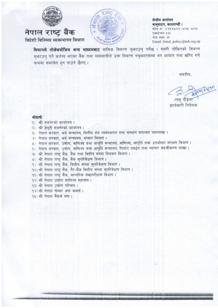 व्यवसायीको आग्रहअनुसार उद्योग वाणिज्य तथा आपूर्ति मन्त्रालयले सुन आयातको सीमा बढाउने निर्णयसहित केन्द्रीय बैंकलाई पत्राचार गरेको थियो । सोहीअनुसार केन्द्रीय बैंकले सुन आयातको सीमा बढाएको छ ।