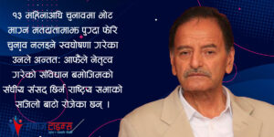काठमाडौं । संविधान निर्माण गर्दा मस्यौदा समितिको सभापति भएर महत्वपूर्ण जिम्मेवारी निभाएका कांग्रेस नेता कृष्णप्रसाद सिटौला संविधान जारी भएपछि भने संसद् प्रवेश गर्नै पाएनन् । १३ महिनाअघि चुनावमा भोट माग्न मतदातामाझ पुग्दा फेरि चुनाव नलड्ने स्वघोषणा गरेका उनले अन्ततः आफैँले नेतृत्व गरेको संविधान बमोजिमको संघीय संसद् छिर्न राष्ट्रिय सभाको सजिलो बाटो रोजेका छन् । गणतन्त्र, … Continue reading आम निर्वाचन हारेका सिटौलाले रोजे राष्ट्रिय सभा