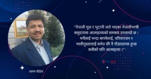 तरुण पौडेल/ मेरिल्याण्ड / अर्जुन मैनाली जी, एक सज्जन, परोपकारी, सबैको भलो चाहाने-रक्तदाता एवं रक्तदान संबन्धी चेतना तथा उत्प्रेरणाका लागि आफ्नै कमाइ खर्च गरीगरी धेरै मुलुक चाहारेका पाका मान्छेले अति पीडा हुने किसिमको आत्मदाह र मृत्युवरणको दुस्साहस गर्नुभो ! सन्नाटा र मथिँगल रन्थर्याउने यस्ता खवर्, मानिसहरुको चिन्तन जिज्ञाँसा; हामी बांचीरहेको समाज भित्रैको एउटा ऐना पनि … Continue reading अर्जुन मैनालीका दुर्घटनाले उब्जाएका प्रश्न