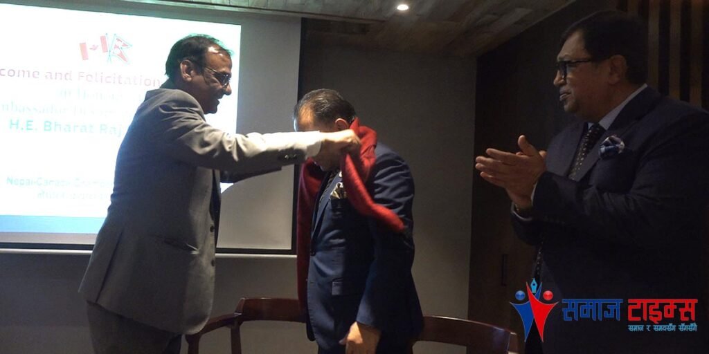 अभिनन्दन कार्यक्रममा बोल्दै क्यानडाका लागि नेपाली राजदूत भरतराज पौडेलले नेपाल र क्यानडाबिचमा अन्तर देशीय व्यवसायको राम्रो सम्भावना रहेको भन्दै नेपालको उत्पादन क्यानडा पठाउने रुचि रहेको बताए ।