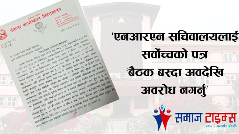 एनआरएनए सचिवालयलाई उच्चस्तरीय समितिको बैठकलाई अवरोध नगर्न सर्वोच्चको पत्राचार