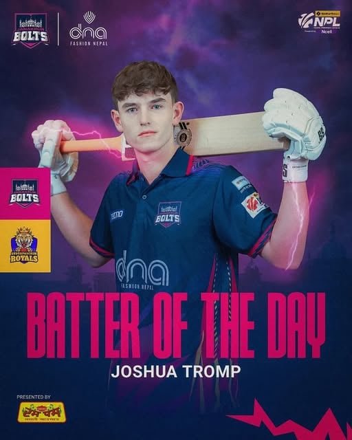 १९ वर्षीय जोशुआ ट्रम्पले एक खेलमा मात्र अवसर पाए। उनले सुदूरपश्चिम रोयल्सविरूद्धको खेलमा खेलेका थिए। सो खेलमा उनले १३ रन जोडेका थिए। अमेरिकाको राष्ट्रिय टोलीबाट भने उनले खेलेका छैनन्। ट्रम्पले अमेरिकाको मेजर क्रिकेट लिग भने खेलेका छन्। उनी टेक्सस सुपर किंग्समा आबद्ध छन्।