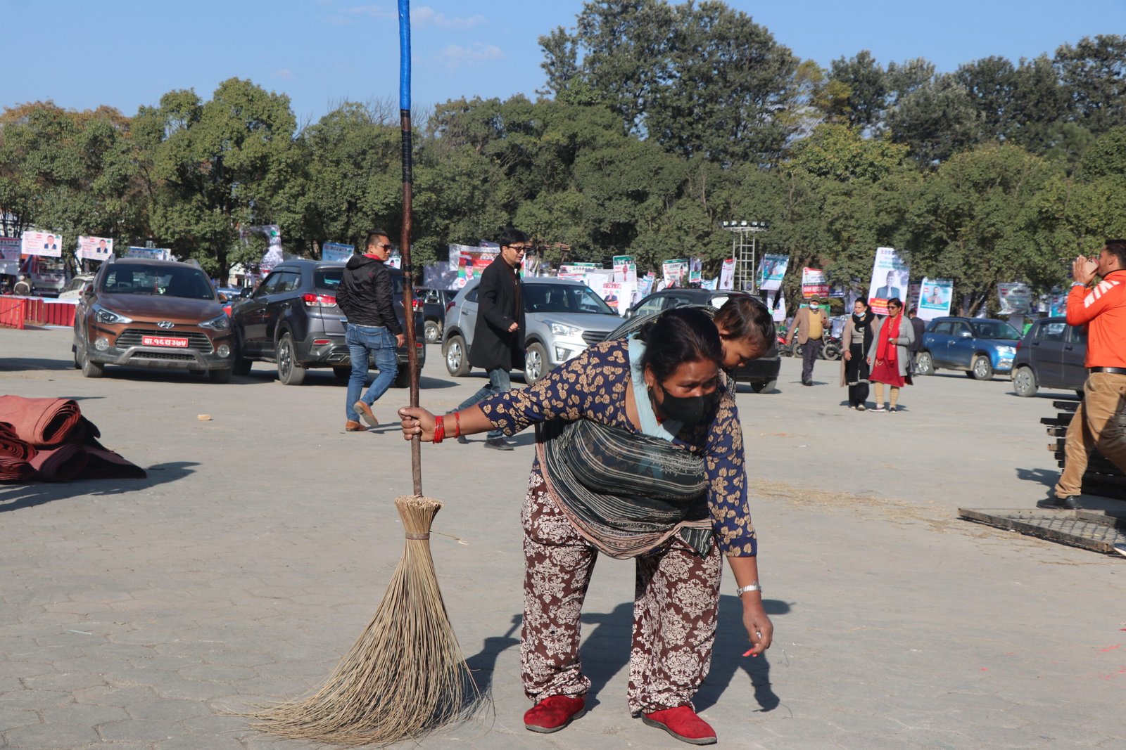 कांग्रेस महाधिवेशन : पिठ्युँमा दुधे बालक बोकेर पैसा कमाउन आएकी रुमा