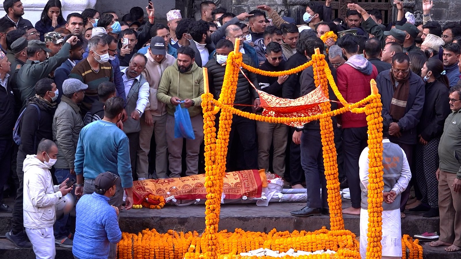 काठमाडौंका मेयर बालेनका बुबा रामनारायणको आर्यघाटमा अन्त्येष्टि