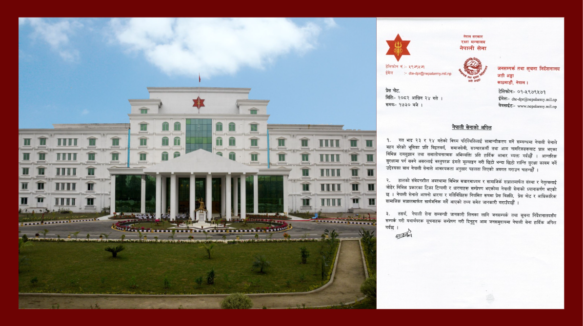 काठमाडौं । नेपाली सेनाले आन्तरिक सुरक्षामा पर्न सक्ने असरलाई... Read more.