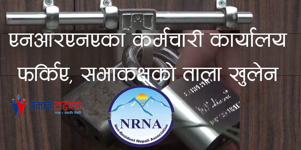 बालुवाटार भवनको सभा कक्षामा ताला लगाएको एनआरएनए आरके समुह पुग्यो काठमाडौं महानगरपालिका